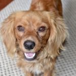 Rupert is a pure bred Cocker Spaniel. He is about a year or a year and a half old, and was clearly a house dog and pet. He is very sweet and friendly and has great manners (although he had no obedience behaviors when we brought him in; not even a “sit”). He rides nicely in the car, walks beautifully on leash, and has no issues with any of the dogs or puppies at the rescue.