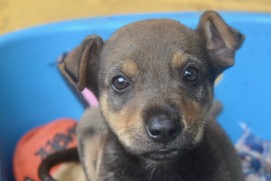 Meet Taz. This incredibly unusually colored puppy was found by a good samaritan in Parramos. Taz was all by himself, and far too young to be out and about on his own. So we really don’t know anything about him aside from the fact that he is incredibly sweet and lovely, and that he is about 7 weeks old.