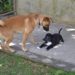 This little nubbin of a puppy was rescued by Francesca on a road trip with her husband. She was teeny-tiny and full of parasites. Francesca has fostered her in her home, and Tomasa is a sweet, friendly pup, good with dogs and great with people.