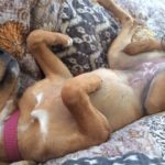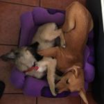 Vanilla is great with other dogs and puppies, lives harmoniously with two cats in her foster home, and loves everyone. She will be a smaller to mid sized dog.