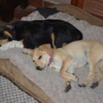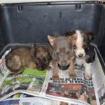 We took this litter as they were very young and not yet fearful of people. Additionally, two of the puppies had severe eye problems, and it seemed likely that they would each lose at least one eye.