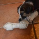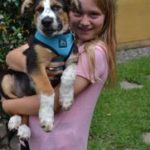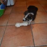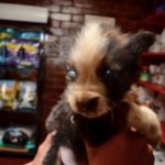We brought Watson in at about 6 weeks of age. Watson was one of the pups with a severe eye issue. His eye had to be temporarily sutured shut and eye drops applied every two hours. He had to wear a miniature cone to prevent him from scratching the eye. The eye healed poorly, and Watson unfortunately lost his sight in the affected eye. Watson was first fostered with his brother Griffin and another pup, Noah. His second foster family has three young children and he loves to play with them. He has been socialized well, and is learning basic behaviors with treats and positive reinforcement. He is a sweet, friendly and affectionate puppy.