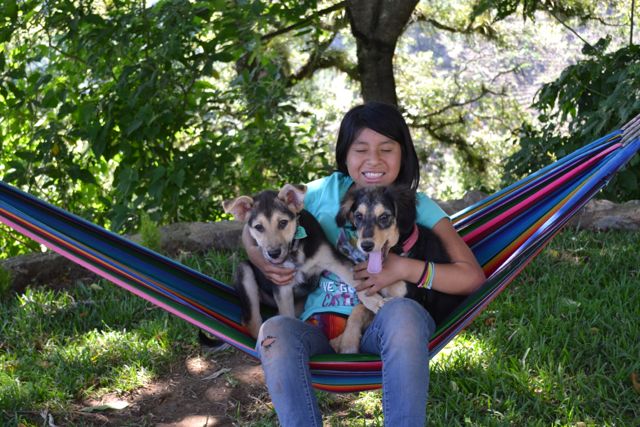 Isabel, Scout, and Lu Lu at Earth Lodge